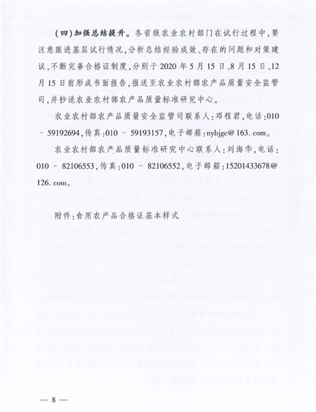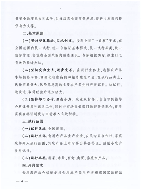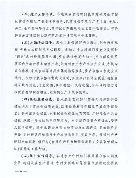 推行農(nóng)產(chǎn)品合格證既是落實(shí)生產(chǎn)經(jīng)營(yíng)主體責(zé)任的迫切需要,也是構(gòu)建農(nóng)產(chǎn)品質(zhì)量*長(zhǎng)效監(jiān)管機(jī)制的現(xiàn)實(shí)需求,更是落實(shí)《農(nóng)產(chǎn)品質(zhì)量*法》的必然選擇,對(duì)于促進(jìn)農(nóng)業(yè)產(chǎn)業(yè)健康發(fā)展、確保農(nóng)產(chǎn)品消費(fèi)*、保證人們的身體健康*具有重大的意義。