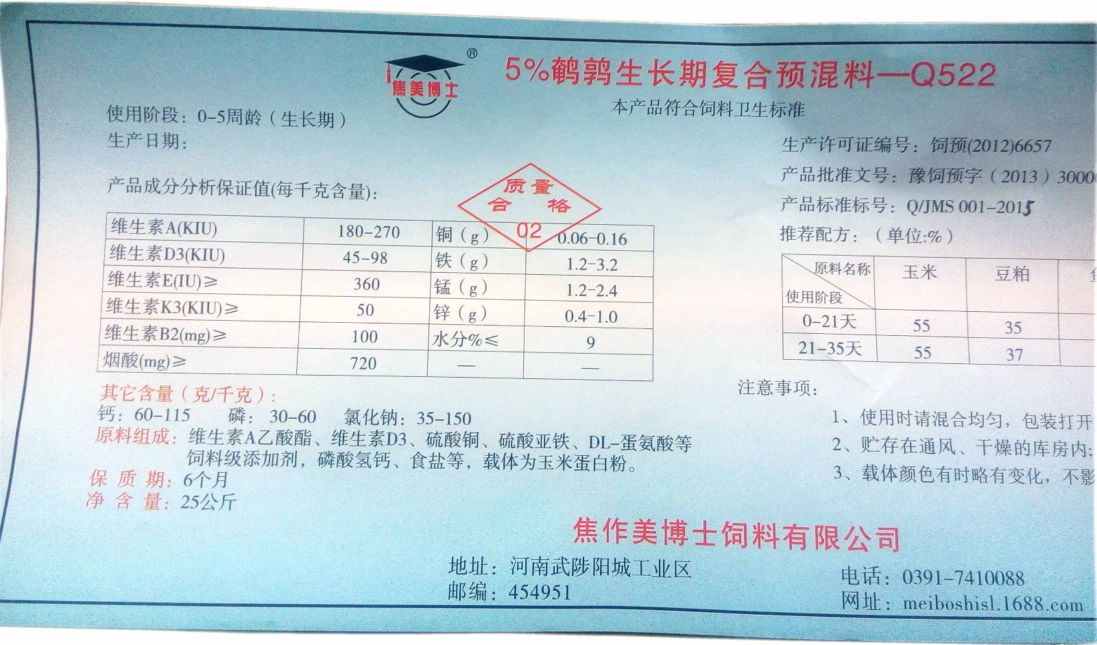 美博士Q522鵪鶉生長(zhǎng)期5%預(yù)混料,進(jìn)口的酶制劑等微生態(tài)制劑的使用大大降低了對(duì)幼小器官的損傷,大大提高鵪鶉消化吸收利用率。高含量的維生素A、維生素D、維生素E、維生素K、維生素C、維生素B1、維生素B2、維生素PP、維生素B12、維生素B4和其他維生素等。專用生長(zhǎng)期料中包括松針?lè)?、槐葉粉、紅豆草粉、三葉草粉和野菊花粉等提取物添加,從而使鵪鶉健康快速的生長(zhǎng),高含量的鵪鶉專用維生素和*微量元素的應(yīng)用使得應(yīng)用使得鵪鶉機(jī)體免疫力大大加強(qiáng),大大提高鵪鶉成活率以及幼雛質(zhì)量,為鵪鶉高產(chǎn)蛋打下良好的基礎(chǔ)。